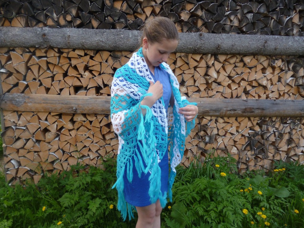 Один из подарков участникам проекта — ажурная шаль. ← Предыдущее Следующее → Один из подарков участникам проекта — ажурная шаль.
